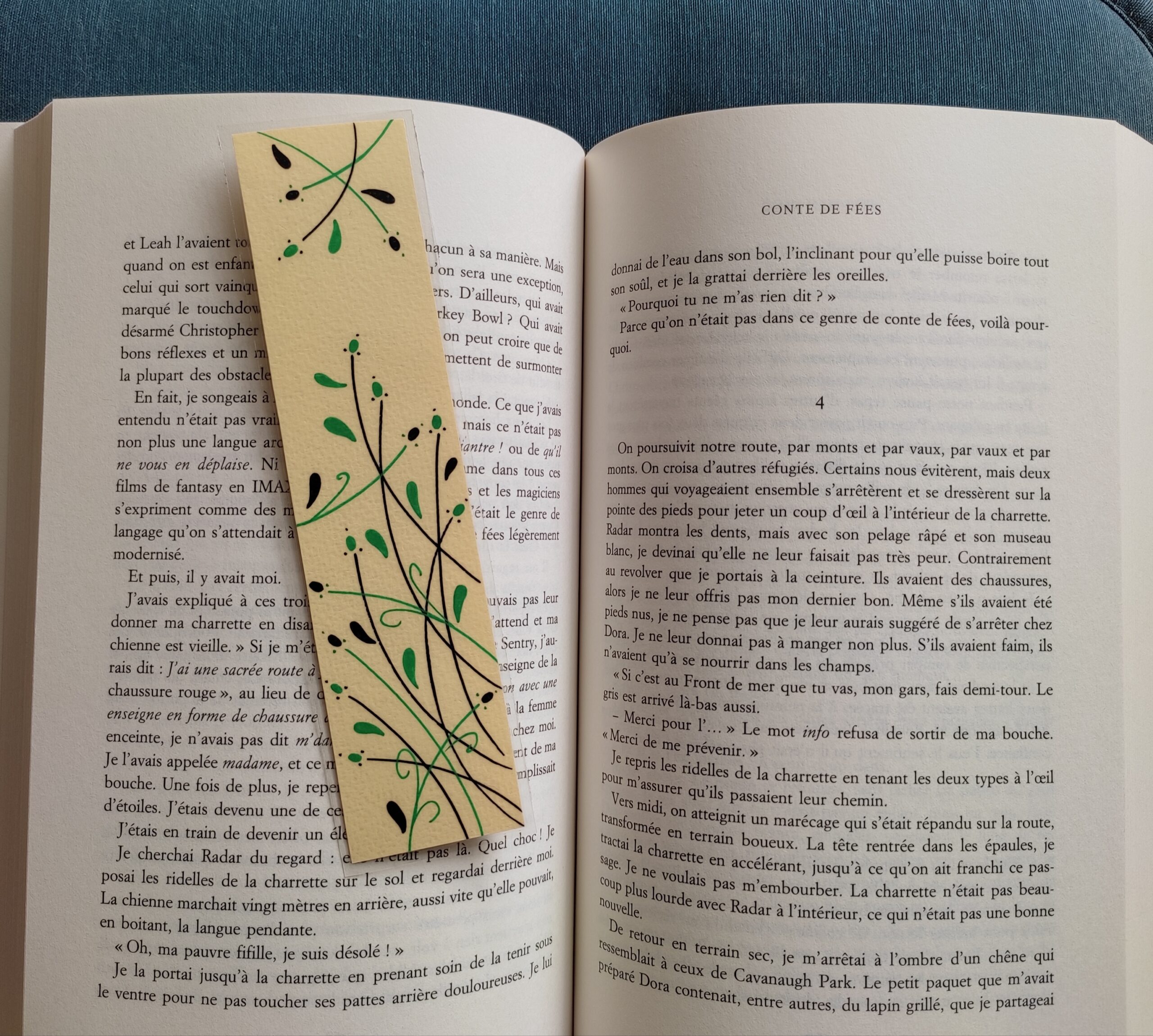 Format 4 x 17 cm, dessins réalisés à l’acrylique et plastifiés.